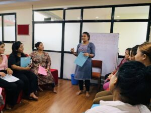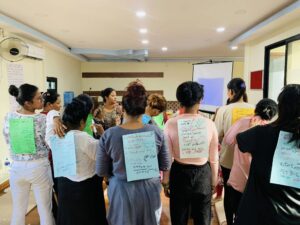 Empowerment sessions is a tool of letting our beneficiaries know about their ability, build up confident level, make self-analysis of their problems and search the solutions by themselves. Being in a patriarchal society and working in slavery like situation, women are not being able to realize their capacity and potentiality. They are grown up in such schooling and social practices that” women are incapable, dependent and can’t be bread earner”. Such hegemony affects the girls and women and can’t ever think out of the box. So our core intention is to enable themselves to for self-realization and resilience. Our task is to help them to reshape their thought about themselves and help them to make better and prosperous life “ a confident woman who understands her human rights, love herself, care for herself and ready to act for her better future” despite all the blaming and underestimates the society does for her. Six levels of training help them to transform themselves completely. Eventually, they are able to have a dignified life with completely transformed mindset.